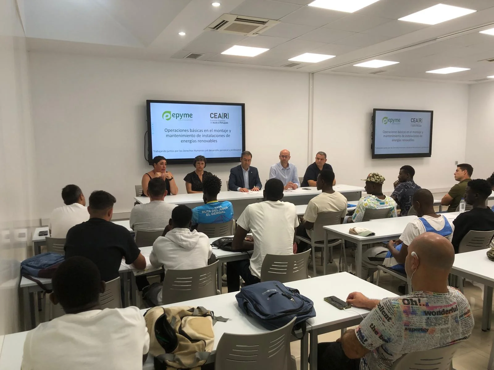 En este 2024 es la segunda acción que emprende Epyme en colaboración con CEAR Comisión Española de Ayuda al Refugiado formando a cincuenta alumnos entre las dos ediciones como instaladores de energías renovables en edificios, programa que incluye unas prácticas profesionales no laborables de 120 horas en empresa instaladora.