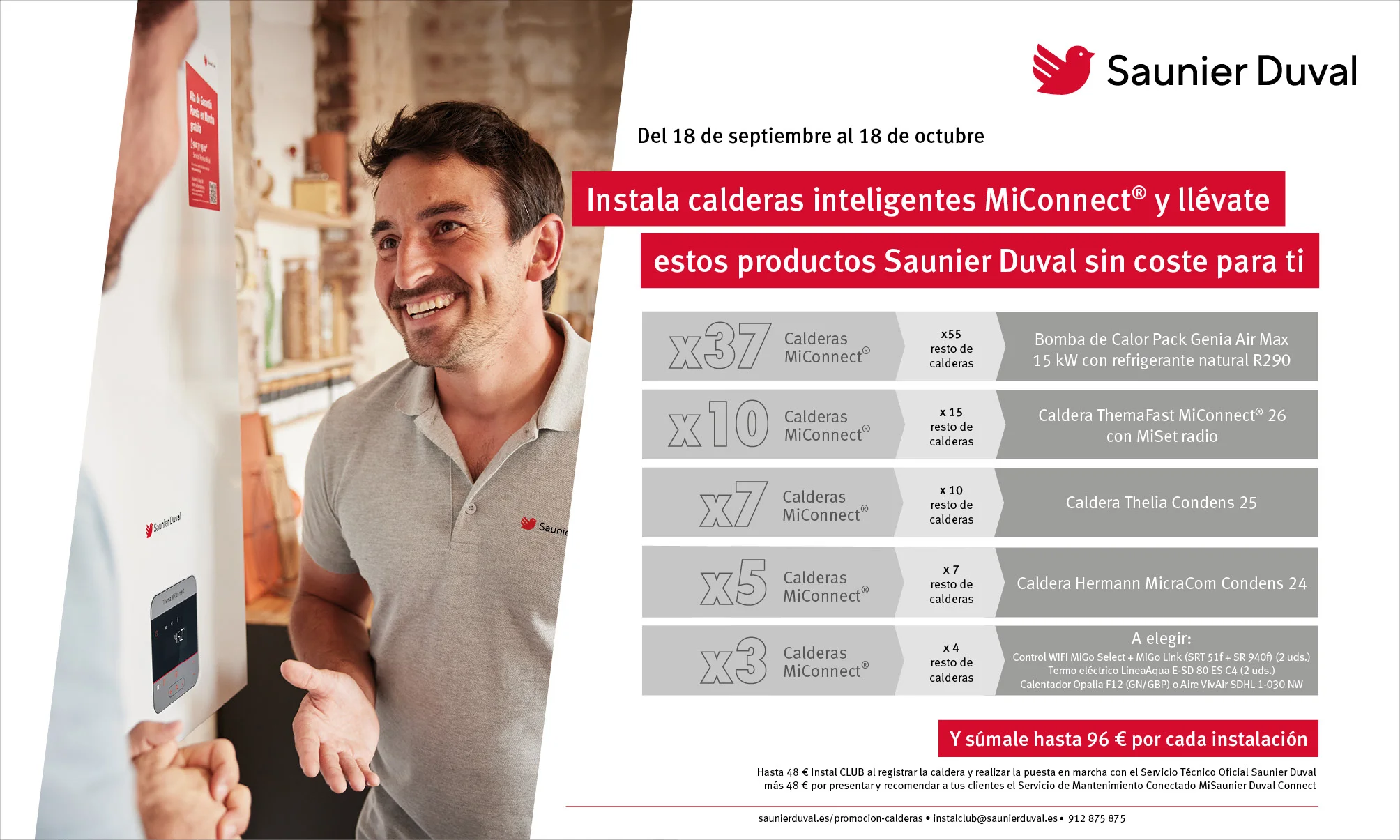 Con el nuevo año llega una nueva oportunidad de ganar más con las calderas Saunier Duval porque los instaladores, en función del número de calderas instaladas entre el 16 de enero y el 16 febrero, pueden conseguir distintos productos Saunier Duval sin