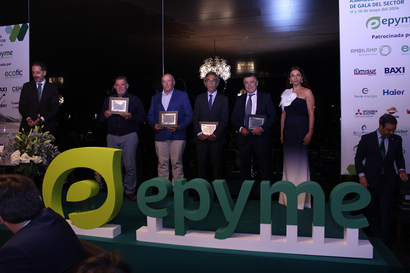 Los patrocinadores de la Cena de Gala del sector también tuvieron un reconocimiento, y se les hizo entrega de una estatuilla conmemorativa a los representantes de Ecotic, Ambilamp, Amisur, Baxi, CSM, Feníe Energía, Haier, Junkers Bosch, Mitsubishi Electric, Nedgia, Repsol, Saunier Duval, Servipresion, Schneider Electric, Siemens, Toscano, Temper, Vaillant, que este año también han marcado el récord de patrocinadores para una Cena de Epyme.