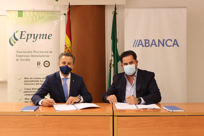 Abanca y la Asociación Provincial de Empresas Instaladoras de Sevilla Epyme, han firmado este convenio que permitirá a cerca de ochocientas empresas instaladoras acceder a productos y servicios financieros en condiciones preferenciales y que permitan la viabilidad de los proyectos de autónomos y pymes de la instalación.