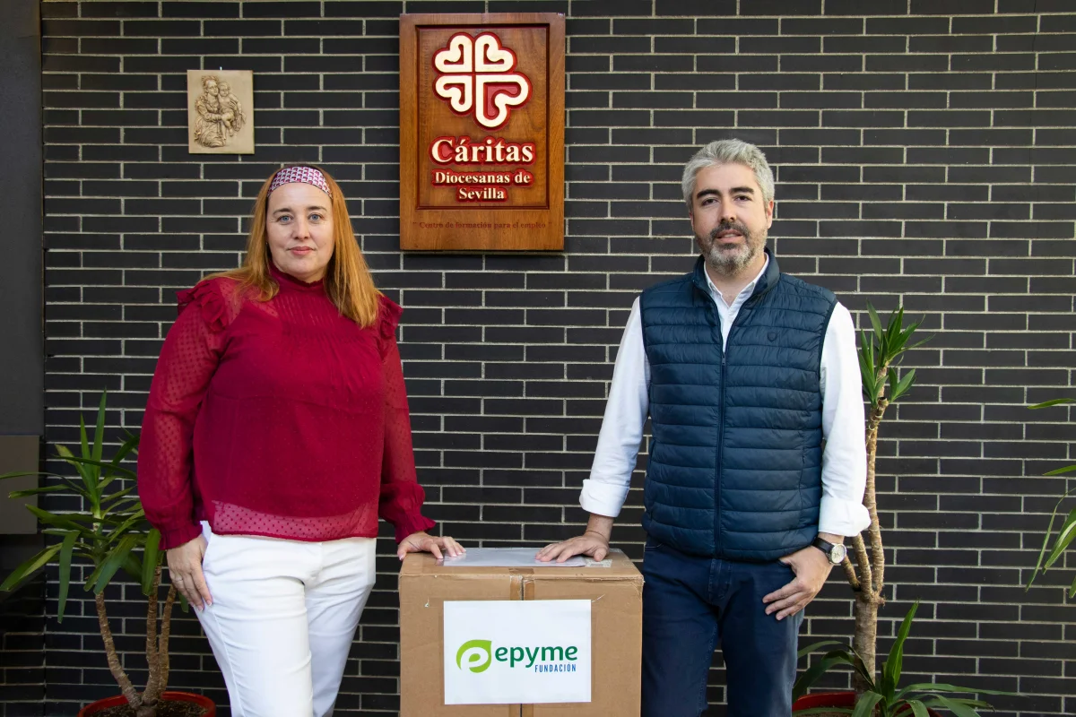 Mónica Salido, Responsable de centros y proyectos de Empleo en Cáritas Diocesana de Sevilla, y Antonio Méndez, Director de la Fundación Epyme.