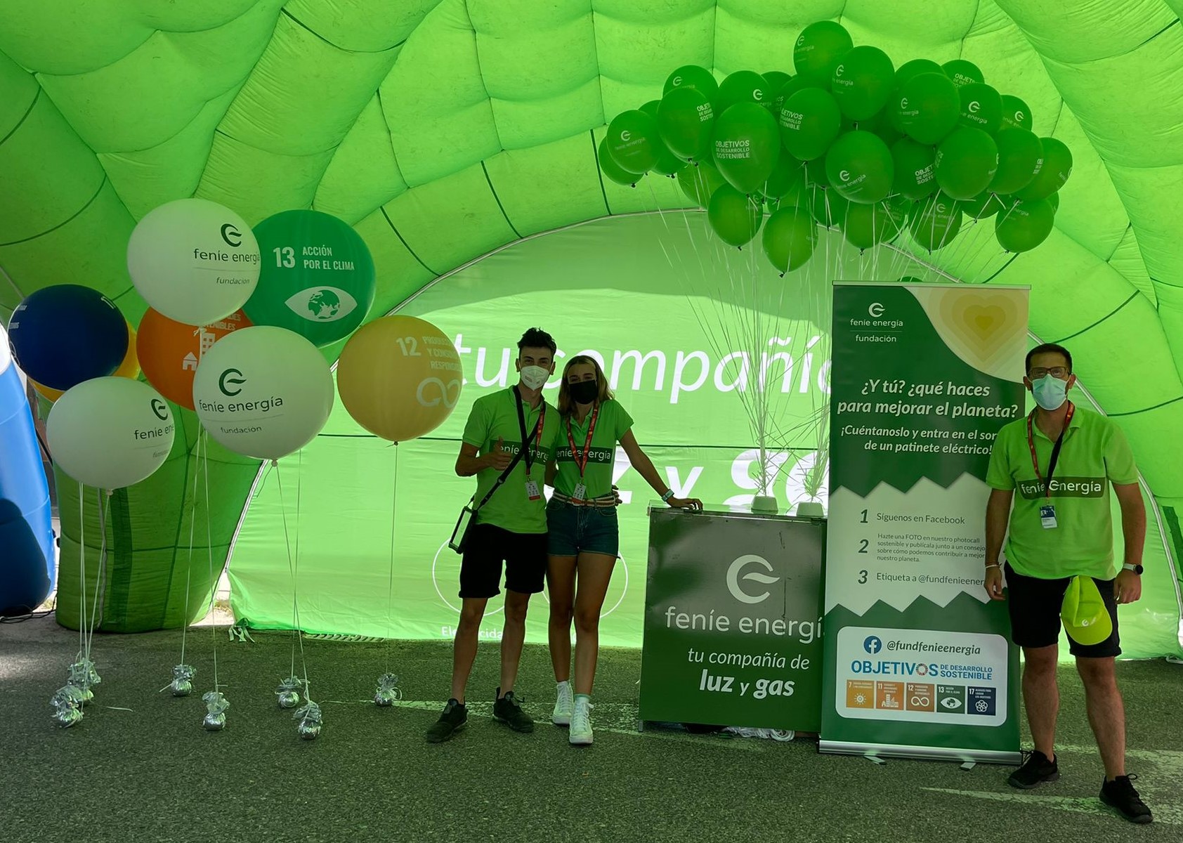 La Fundación ha diseñado un photocall en 3D con globos gigantes de helio de los ODS, a los que Feníe Energía impacta directamente con su negocio, para promover que los visitantes de Parque Vuelta reflexionen sobre cómo cada uno de nosotros puede contribuir a mejorar nuestro planeta.