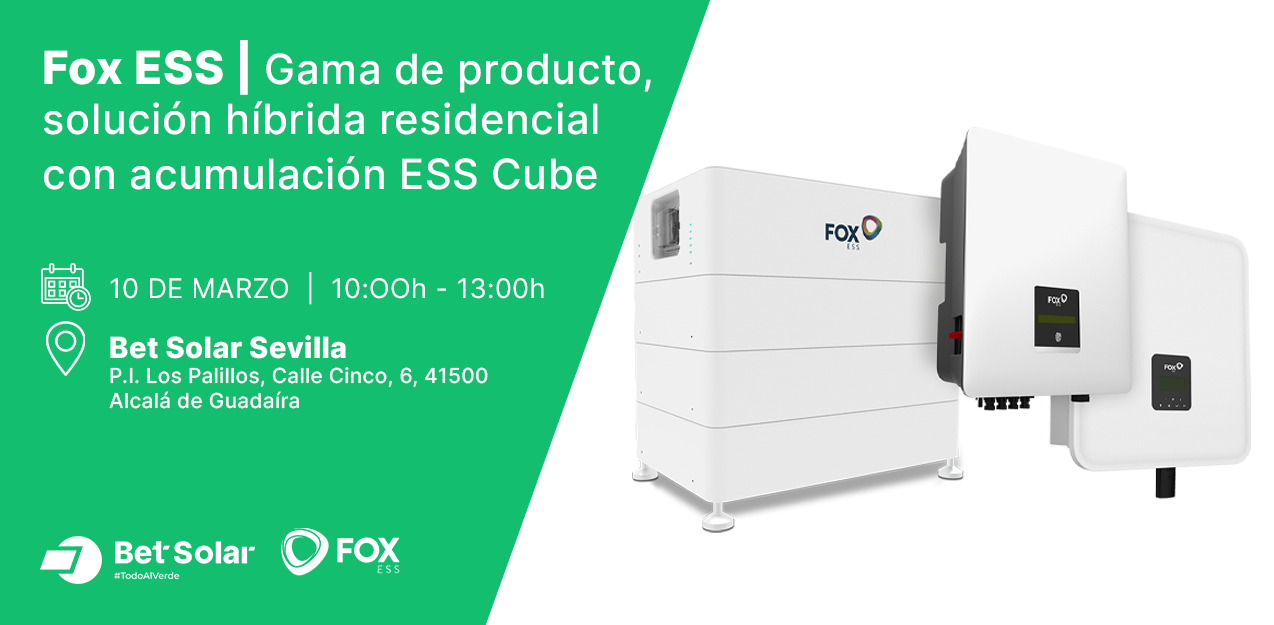En esta ocasión BET SOLAR se acompañará del fabricante Fox ESS. Se profundizará de forma teórica en sus soluciones y se combinará junto a una demostración práctica de productos reales:
