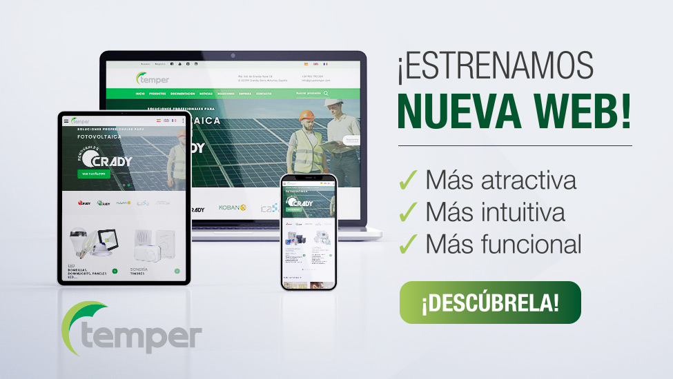 Como novedad, la web incorpora un buscador más eficaz que permite buscar productos por nombre de referencia, nombre de familia, código numérico, descripción o código ETIM. También cuenta con un apartado de “soluciones” en el que se podrá encontrar todos los equipos necesarios para gestionar de manera eficiente el gasto energético en distintos ámbitos además de facilitar la interacción con los clientes con acceso directo a las redes sociales de Temper (Linkedin, Youtube, Facebook y Twitter) para que puedan estar al tanto de todas las novedades.