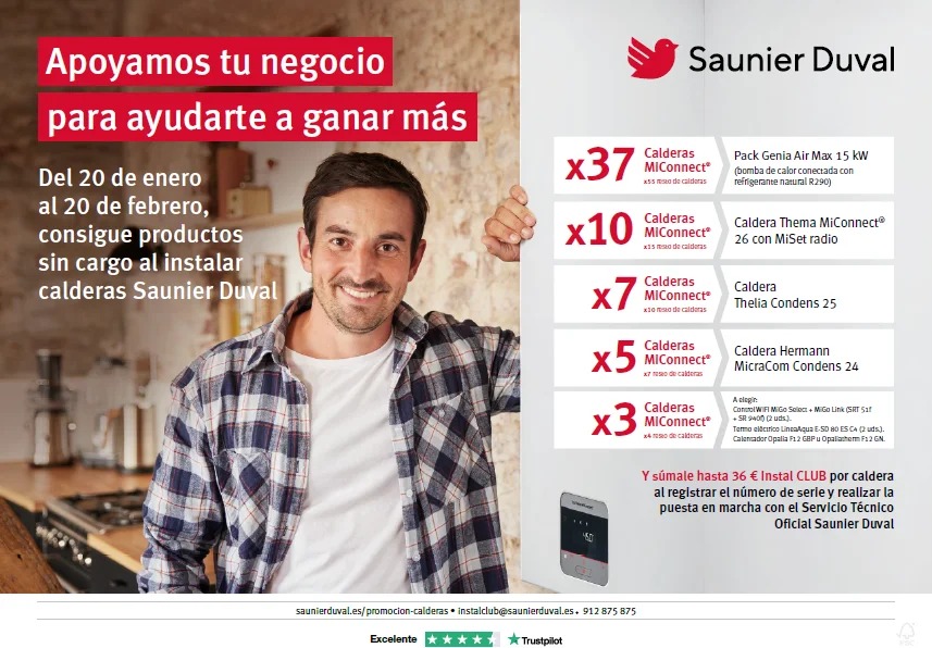 FPara apoyar en su negocio a los profesionales de la instalación, Saunier Duval empieza este 2025 ofreciendo una nueva oportunidad de conseguir productos sin coste con las calderas que adquieran entre el 20 de enero y el 20 de febrero.