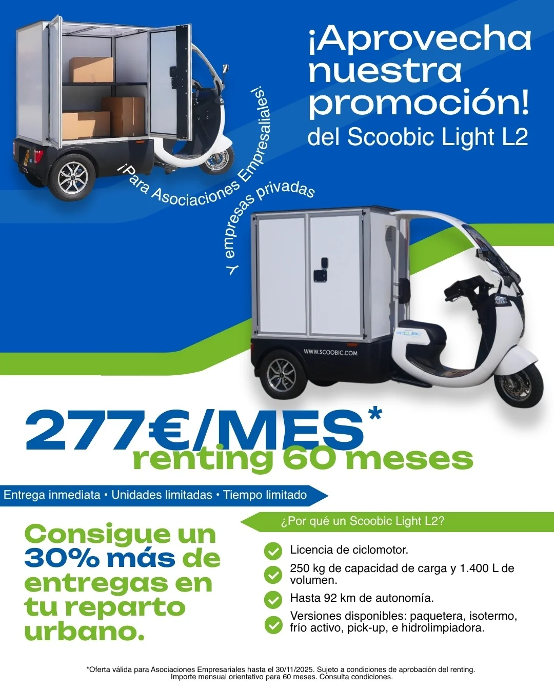 Aprovecha esta promoción exclusiva de Scoobic Nimo hasta el 30 de noviembre. Incluye diseño y rotulación del vehículo GRATIS.