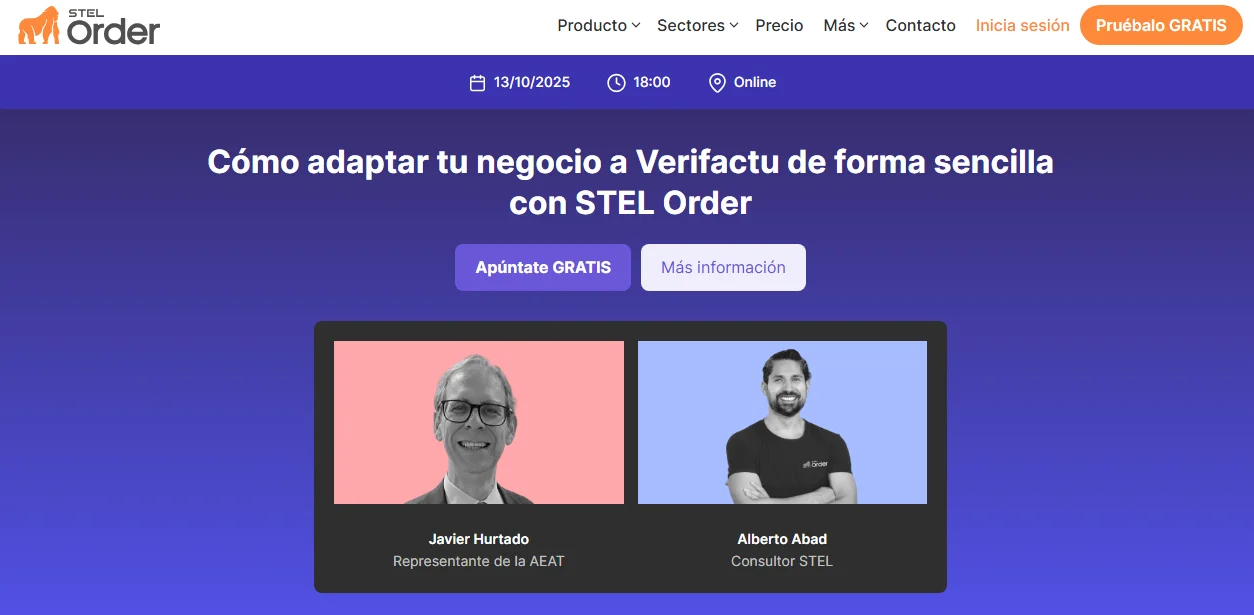 Nuestro socio colaborador STEL Order, nos invita al webinar para analizar la nueva normativa Verifactu que entrará en vigor en enero de 2026 y afectará a todos los negocios. Será el 13 de octubre a las 18 horas en formato online.